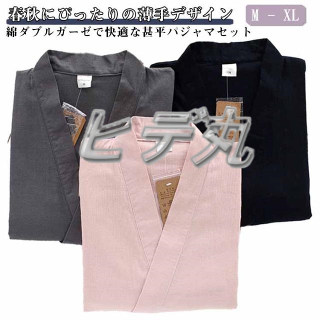 | 綿ダブルガーゼで快適な甚平パジャマセット 春秋にぴったりの薄手デザイン 綿のダブルガーゼ素材で作られた、肌に優しく通気性抜群の和風パジャマセット。 春夏秋の3シーズン対応、薄手で軽やかな着心地。 五分袖トップスと長ズボンの上下セットで、ゆったりリラックスできるデザイン。 男女兼用でペアコーデに最適、シンプルな無地デザインが特徴。 部屋着としても睡眠時にも快適で、敏感肌の方にもおすすめ。 | |