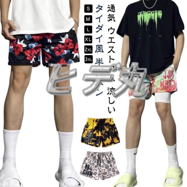 メンズ おしゃれ タイダイ風 ランニング 短パン ハーフパンツ バスパン ズボン バスパン スポーツ 半ズボン バスケットボールパンツ バスケ 膝上 ショートパンツ トレーニング 部屋着 バスパン ジュニア 運動会 運動着 通気 バスケパンツ ウエストゴム 夏 春服 夏服