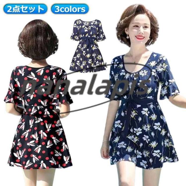 太もも ママ 水着 50代 水着 ワンピース 体型カバー水着 露出控えめ ぽっちゃり 60代 レディース 50代 ママ水着 パンツ付き 体型カバー