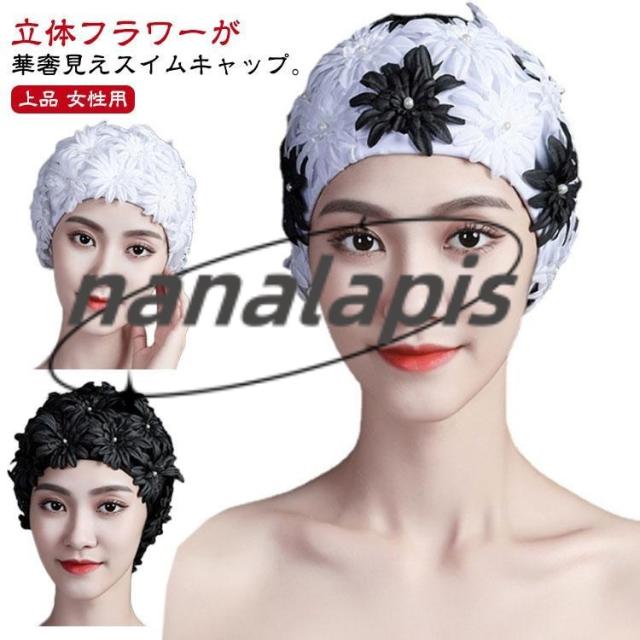 水泳帽 スイムキャップ レディース パール ロングヘア対応 温泉 速乾 立体フラワー 防水 海水浴 花びら 水着帽子 スイミングキャップ プール