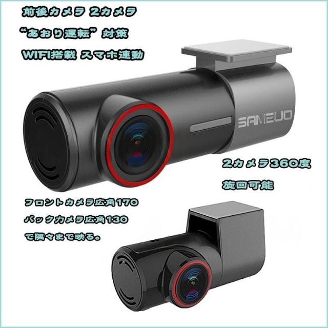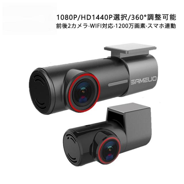 商品特徴:ドライブレコーダー ドラレコ コンパクト 360度調整可 ステッカー 小型 wifi対応 分離型 前後カメラ 広角 フルHD 1200万画素 1440P