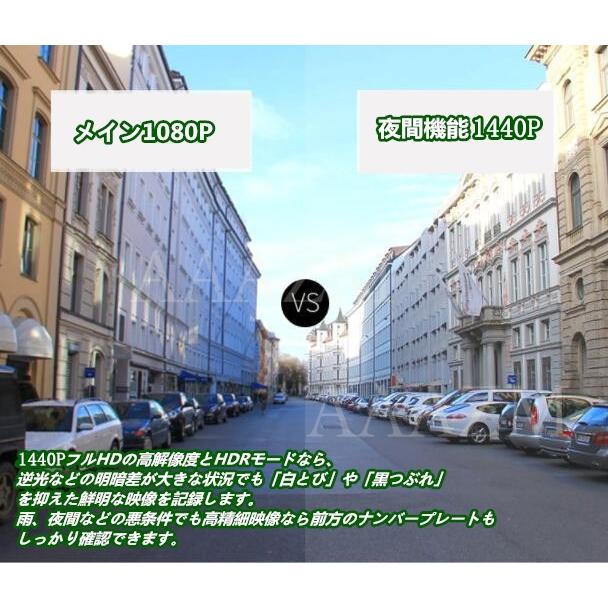 録画解像度:1カメラ/前方録画1080P 2カメラ/前後録画1440P+1080P(配線が必要)