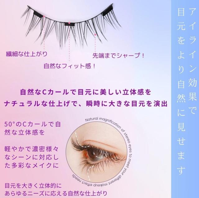 - つけるのにコツがあるため最初は練習が必要です。 つけた後はナチュラルな感じでつけまつげ感が激しくないのでちょうど良く気に入っています。