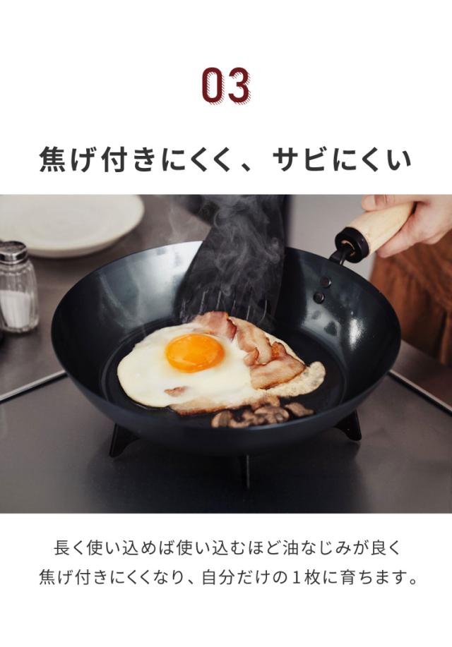 軽くてお手入れ簡単な鉄フライパンだから、毎日の調理に気兼ねなく使っていただけます。
