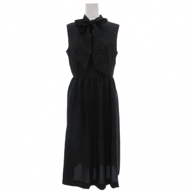 【中古】オーフリー AWFULLY ワンピース 星柄 ノースリーブ ミモレ ロング F 黒 ブラック /JS レディース
