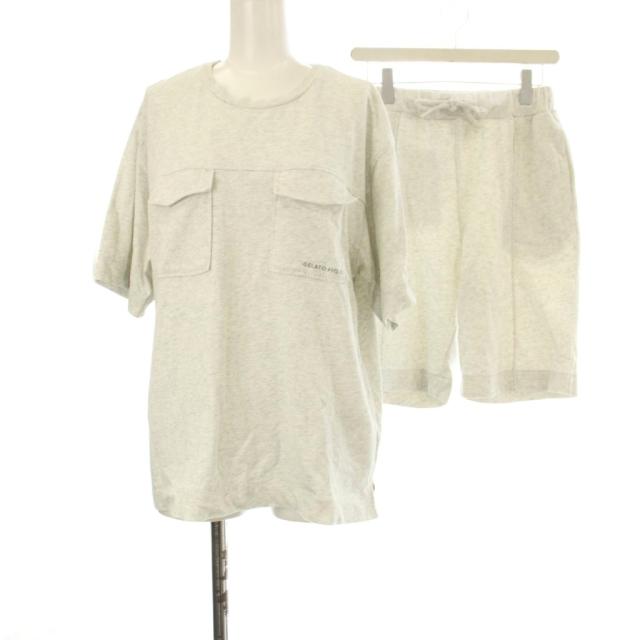 【中古】ジェラートピケ セットアップ 2ポケットプルオーバー 裏毛タックハーフパンツ ルームウェア M ライトグレー