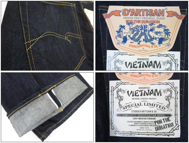 ダルチザン ステュディオ・ダ・ルチザン STUDIO D'ARTISAN ベトナム 大戦 ジーンズ 14ozデニム レギュラーストレート ワンウォッシュ D1909