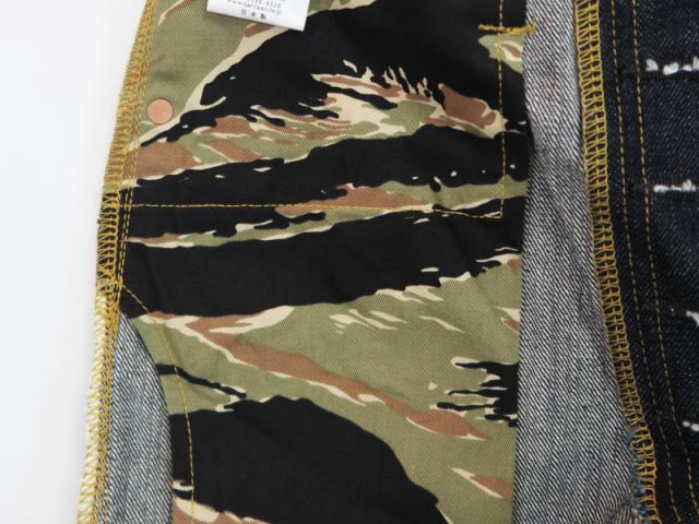 ポケットの袋布には、ベトナム戦争で使用されたタイガーストライプ迷彩を採用しています。
