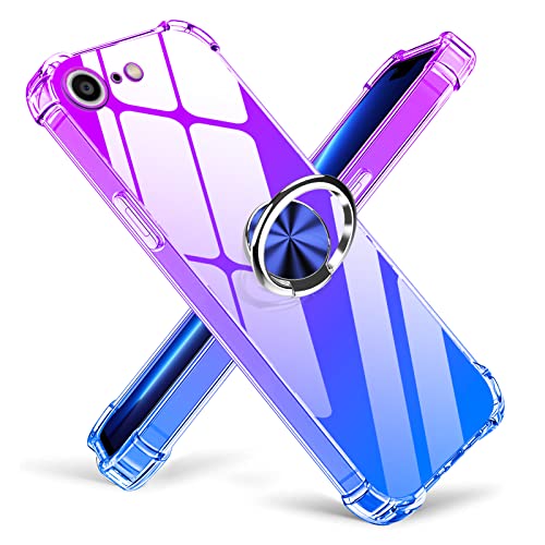 iPhone SE / 第2世代 iPhone8 / iPhone7 リング クリア TPU 耐衝撃 透明 車載ホルダー スタンド機能 グラデーション 薄型 アイフォン8 カバー 全面保護 360回転 軽量 シリコン 黄変防止 防指紋 防塵 スリム 滑り防止 人気 パープル+ブルー 送料無料