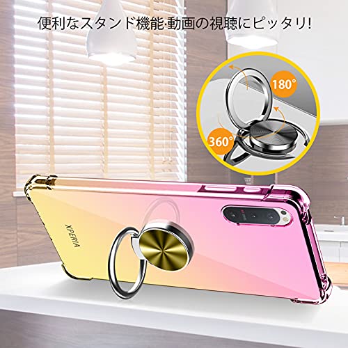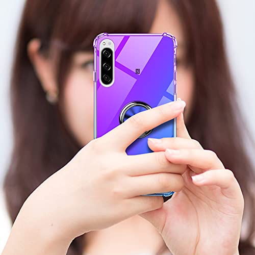 Xperia 5 ケース リング クリア TPU 耐衝撃 透明 車載ホルダー スタンド機能 薄型 ソニー エクスペリア5 カバー 全面保護 360回転 軽量 シリコン 防指紋 防塵 スリム 滑り防止 人気 SO-01M SOV41 パープル+ブルー 送料無料