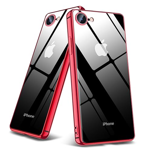iPhone SE3 / iPhone SE ケース 第2世代 iPhone8 / iPhone7 ケース クリア TPU 耐衝撃 透明 薄型 カバー ソフト 全面保護 軽量 シリコン 黄変防止 ストラップホール付き レンズ保護 滑り防止 人気 赤
