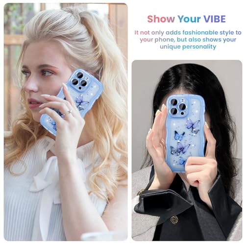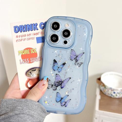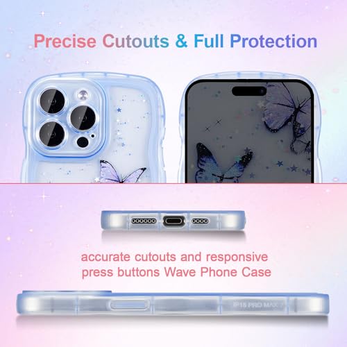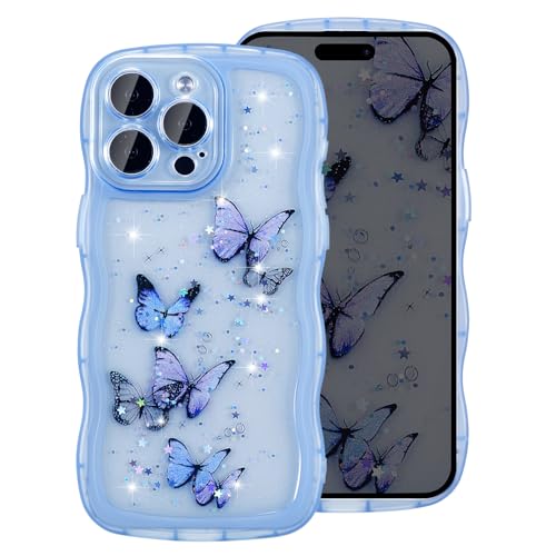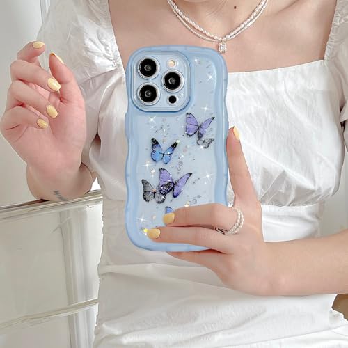 iPhone XR ケース 光る レーザー グリッター 光沢カバー 可愛い おしゃれ 蝶 キラキラ ケース 透明 TPU ウェーブデザイン スマホケース 軽量 耐衝撃 女性 人気 波型 バンパー スマホケース - ブルー