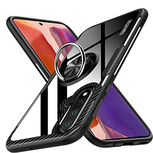 Huawei Nova 5T ケース クリアケース リング付き 耐衝撃 背面強化ガラス スマホケース 透明 薄型 9H背面 スタンド機能 車載ホルダー 黄変防止 TPUバンパー 落下防止 レンズ保護 滑り防止 軽量 一体型 ファーウェイ ノヴァ5t 用カバー 黒 送料無料
