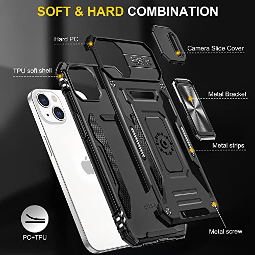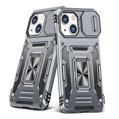 iPhone 14 ケース リング スライド式カメラカバー 耐衝撃 スタンド機能 車載ホルダー レンズ保護 アイフォン14 スマホケース PC TPUバンパー 防塵 人気 落下防止 滑り止め 指紋防止 グレー 送料無料