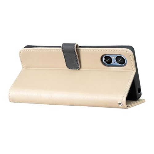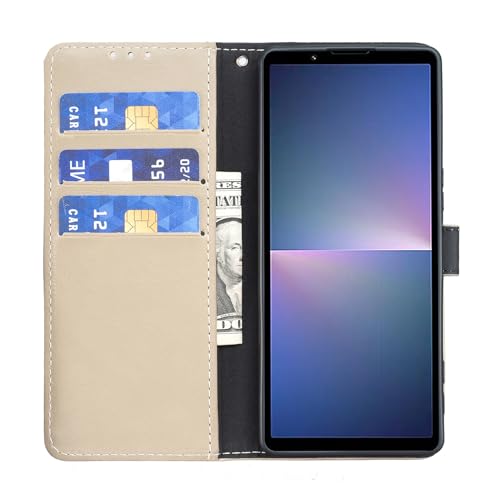 Xperia 5 V SO-53D SOG12 ケース 手帳型 保護カバー カード収納 側マグネット ブラケット機能 耐衝撃性 軽量 モダン シンプル PUレザー 折りたたみ式 フル保護カバー スマートフォンケース (グレー)