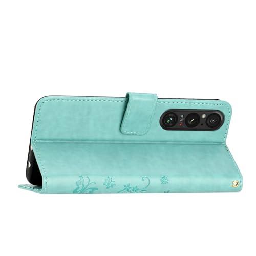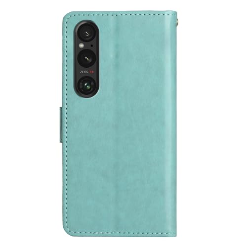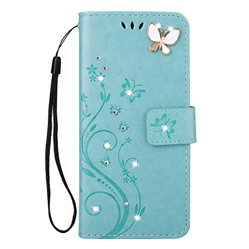Xperia 1 VI ケース 手帳型 カバー おしゃれ バタフライ PUレザー カード入れ SO-51E 財布カバー スタンド機能 耐衝撃 防塵 耐久性 装着やすい 吸着の機能 キラキラ 胡蝶 ラインストーン デコ メチャ可愛い SOG13 マホカバー グリーン
