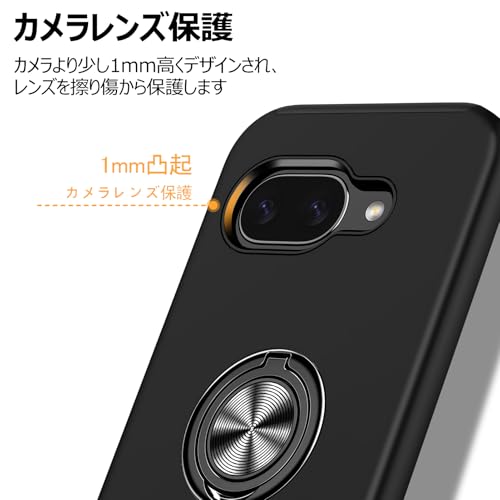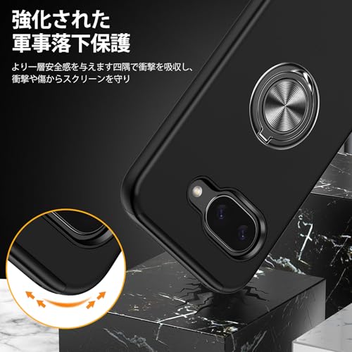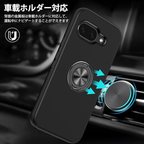 Google Pixel 9A ケース リング 耐衝撃 tpu pc 二重構造 全面保護 一体型スマホケース グーグル ピクセル 9a ケース 衝撃吸収 シリコン 360°回転 スタンド機能 軽量 薄型 車載ホルダー 指紋防止 人気 黒