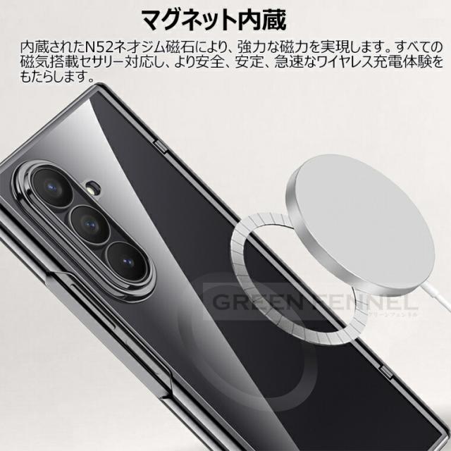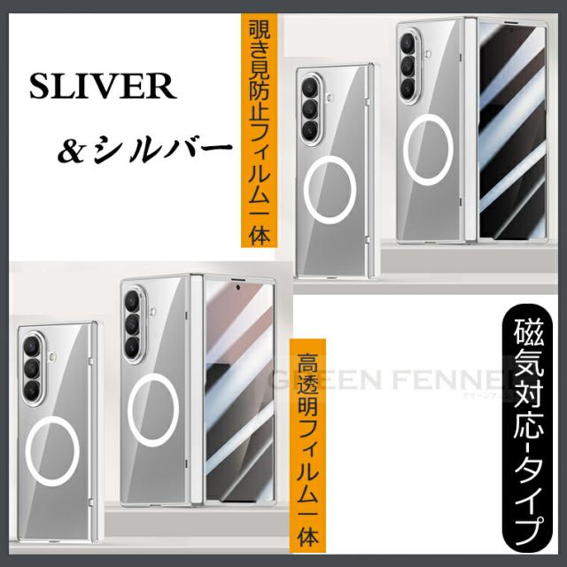 高透過率 Galaxy Z fold7 ケース クリア 透明 ヒンジ保護 galaxy z flod 7 保護カバー magsafe/磁気対応 ガラスフィルム 耐衝撃 ギャラクシーz フォールド7 ケースカバー ワイヤレス zfold7 5G ケース 高透明度/ 覗き見防止フィルム一体 高級 高品質 ビジネス pc+メッキ加工