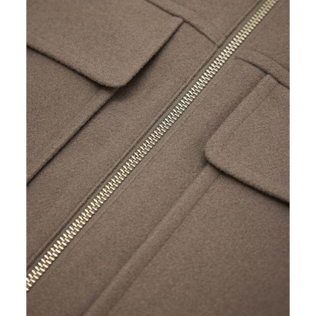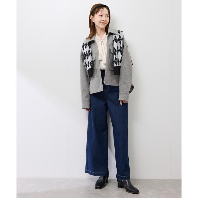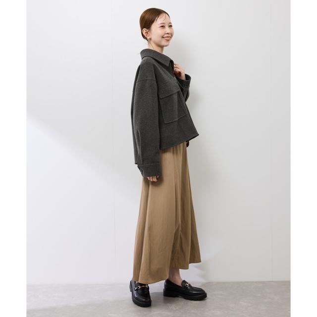 冬にも対応してくれる厚みです。中肉程度のニットなら問題なく羽織れるサイズ感。着丈は腰が隠れる長さ。襟付きなのでスタイリッシュな雰囲気を作れます。