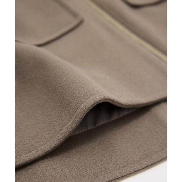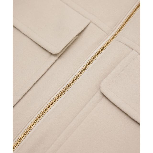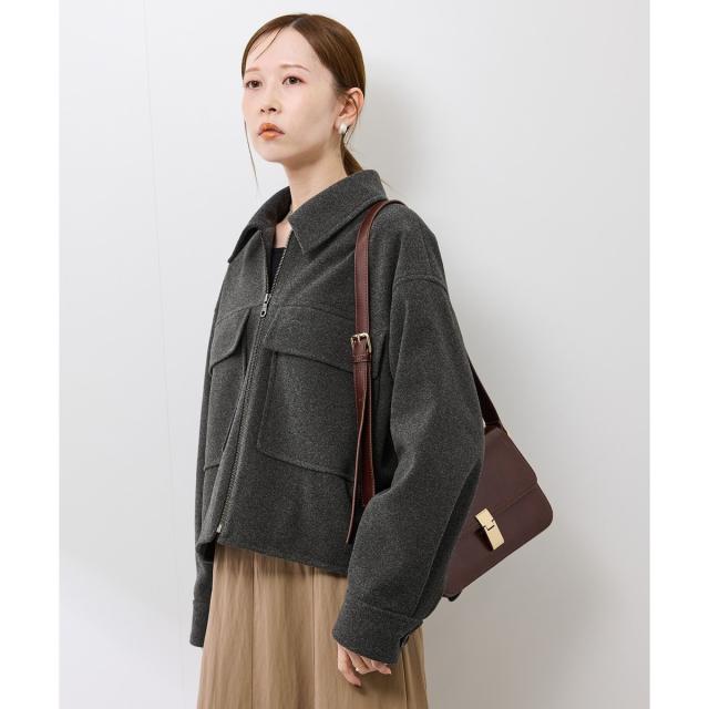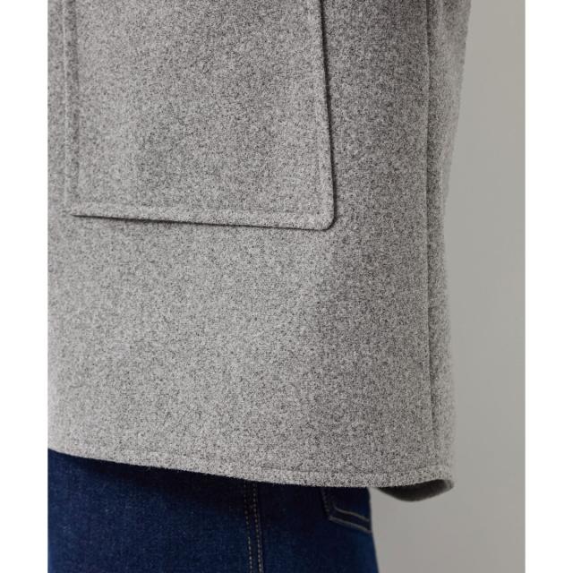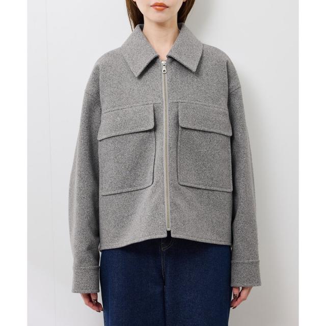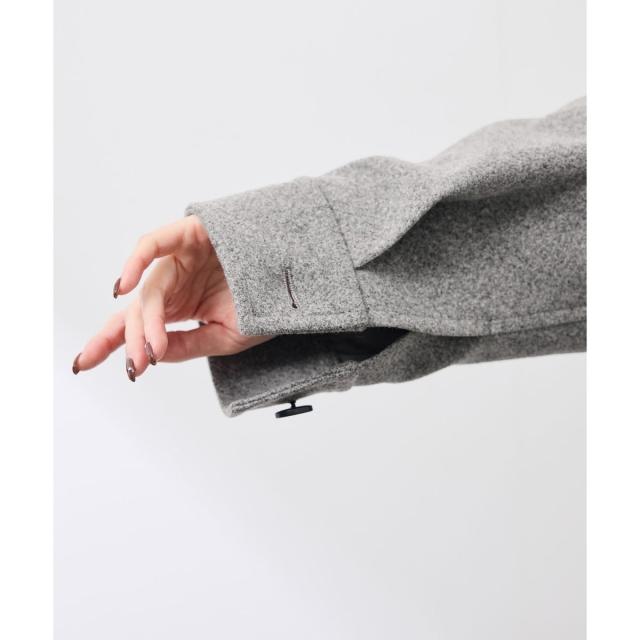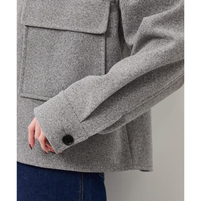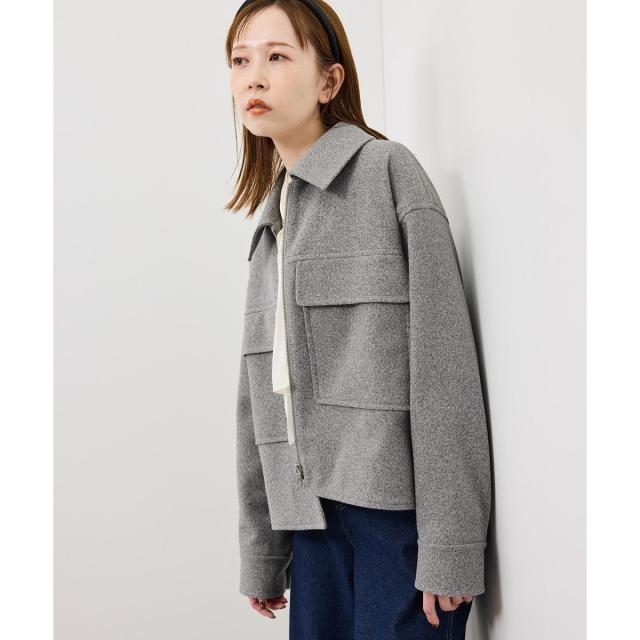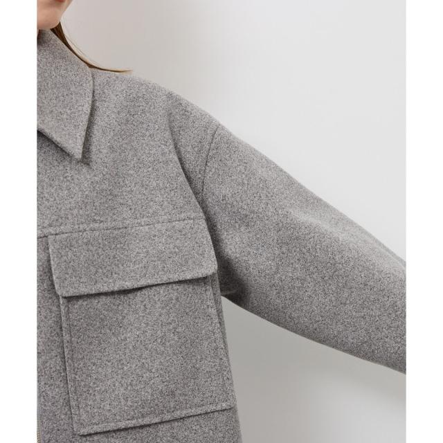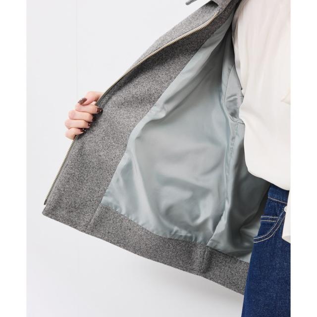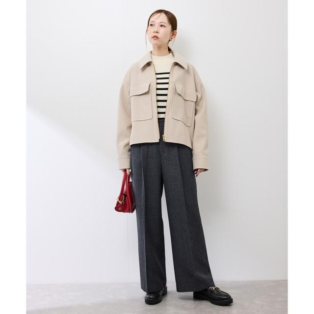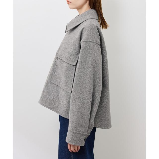 ゆったりとしたサイズ感で着やすいショートコートです。着丈はヒップにかかる長さでした。