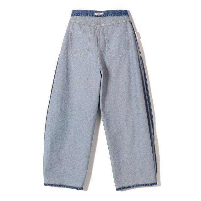 横の接ぎを前にずらすことで視覚効果が出て、カーブデニムながら太く見えすぎず、すっきりとした印象で穿いていただけます。