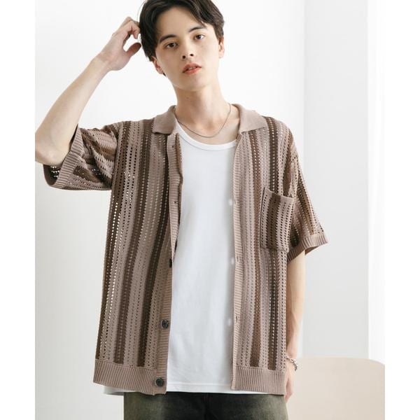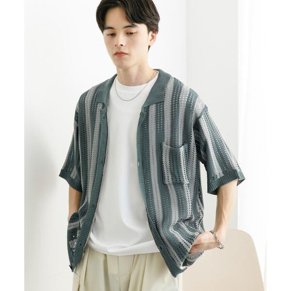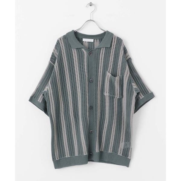 ストライプショートスリーブニットシャツ