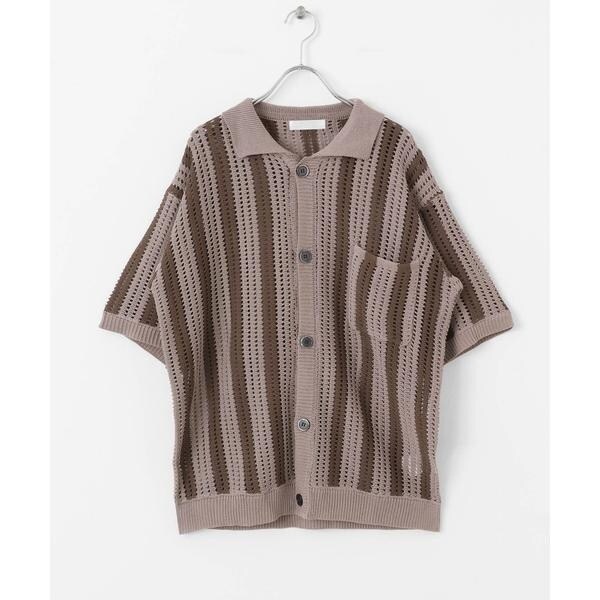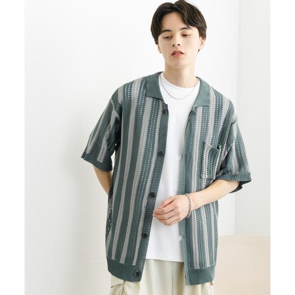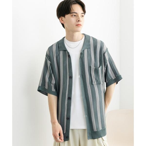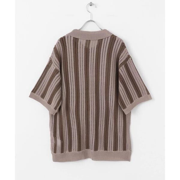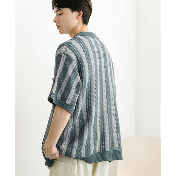 センスオブプレイスバイアーバンリサーチ(SENSE OF PLACE)/ストライプショートスリーブニットシャツ