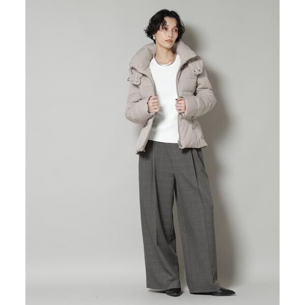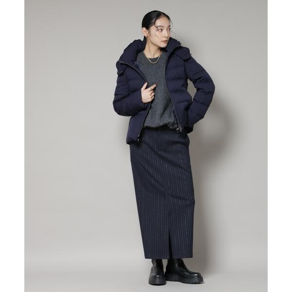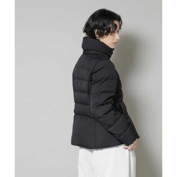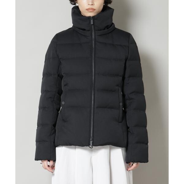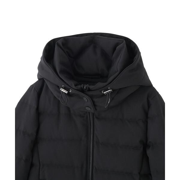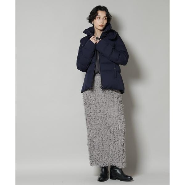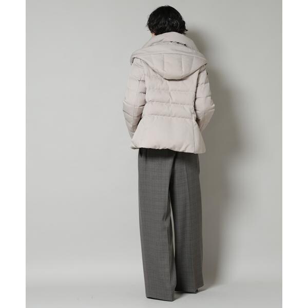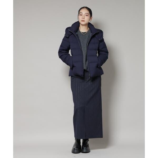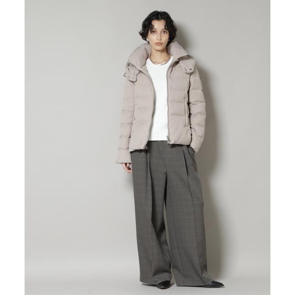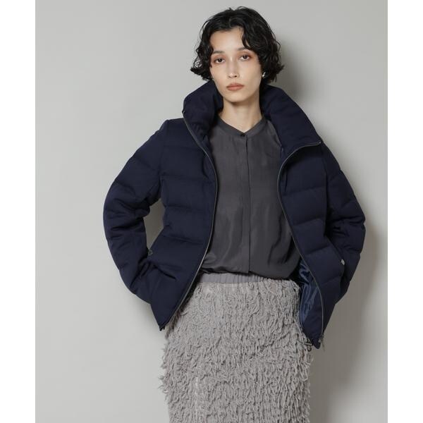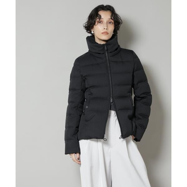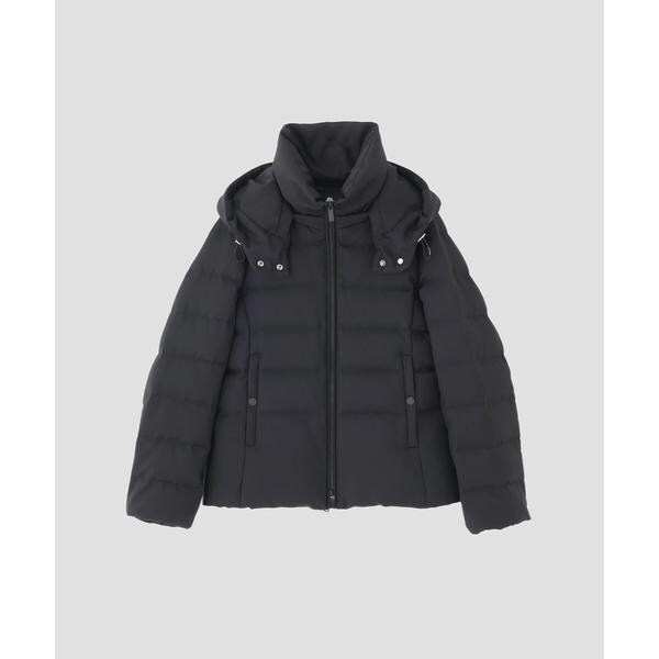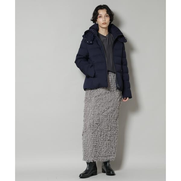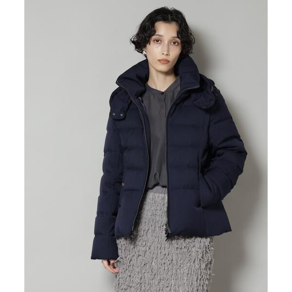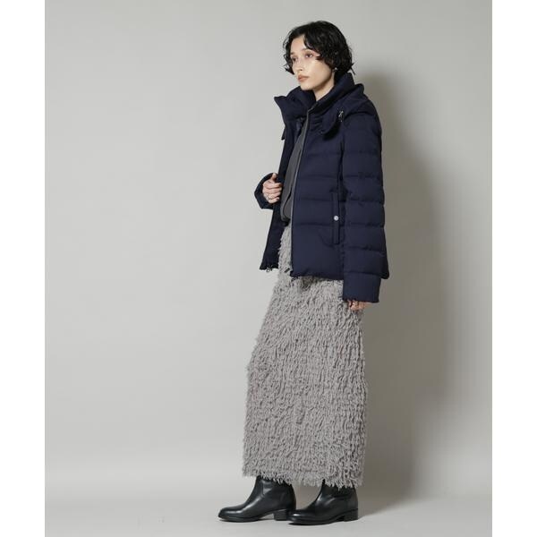 定番人気のサージショートダウン。定番的なデザインだからこそ、よりすっきり女性らしく見えるよう、シルエットやバランスにこだわったアイテム。フードは脱着可能で、スタイルに合わせてスタンドカラーにしたりと変化を楽しめます。