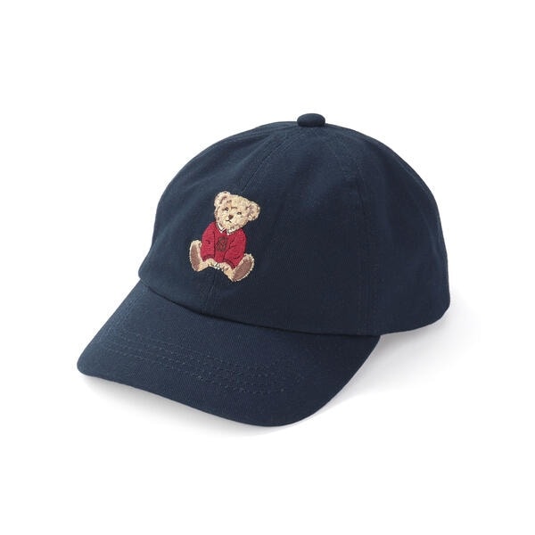フロントにほどこしたクマの刺しゅうがポイントのキャップ。