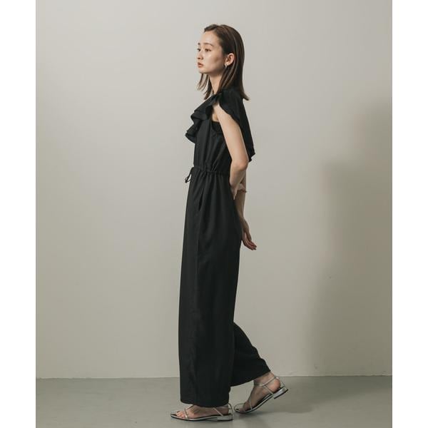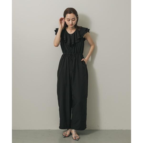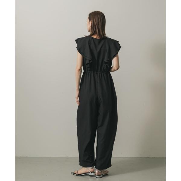 【華やかさと快適さを両立。フリルが映えるオールインワン】