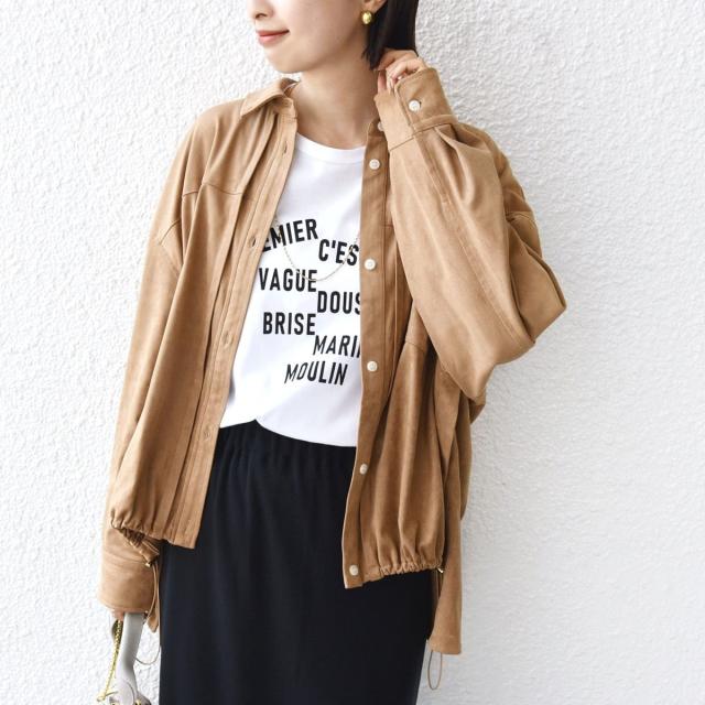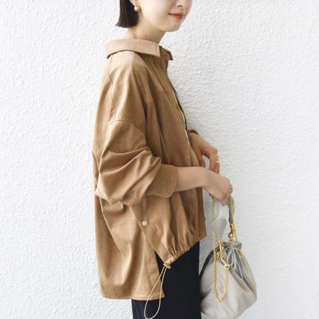 今年注目のポリエステル スエードのシャツ羽織。