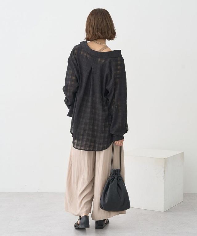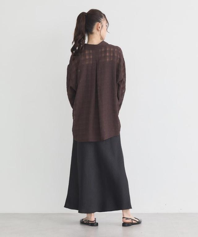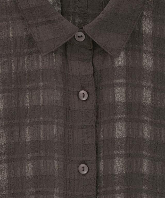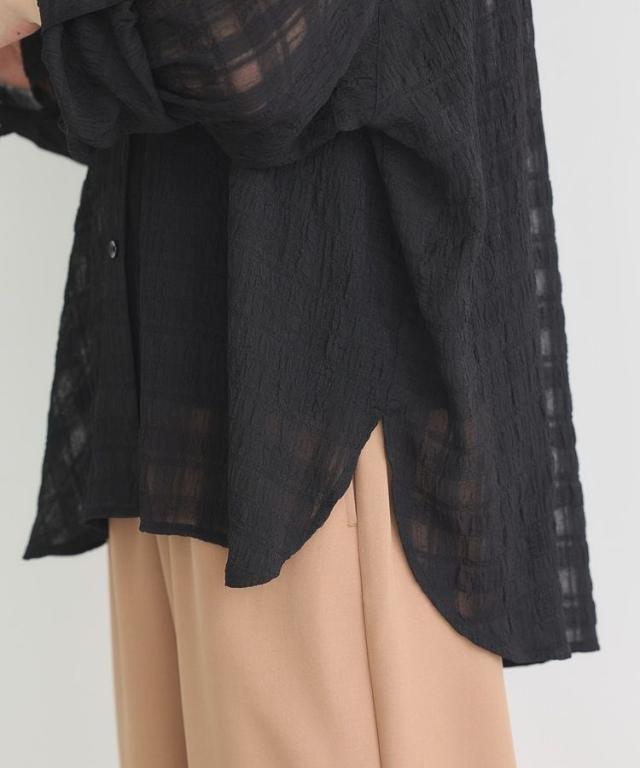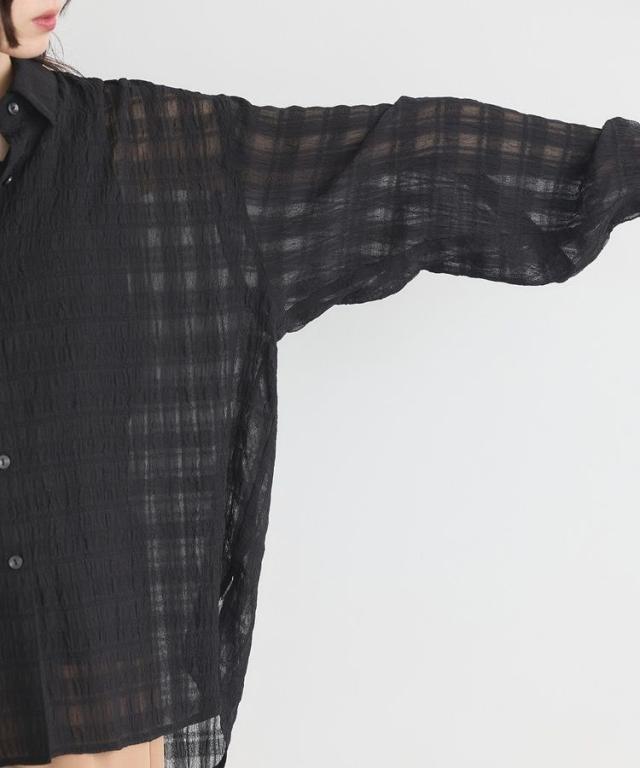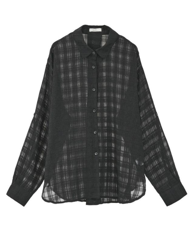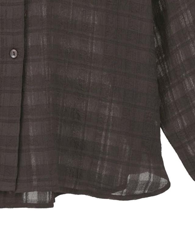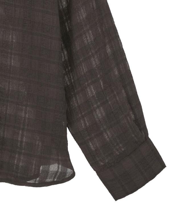 無地ライクなシャドーチェック柄で旬な着こなしを叶えるデザインシャツ。シボ感のあるシアーな生地で秋のシーズナルスタイルに映える軽やかな一枚です。背中心のタックでふんわりとしたシルエットに、袖のロールアップアレンジがこなれ感たっぷりな一枚。インナー次第でロングシーズン楽しめるおすすめのアイテムです。