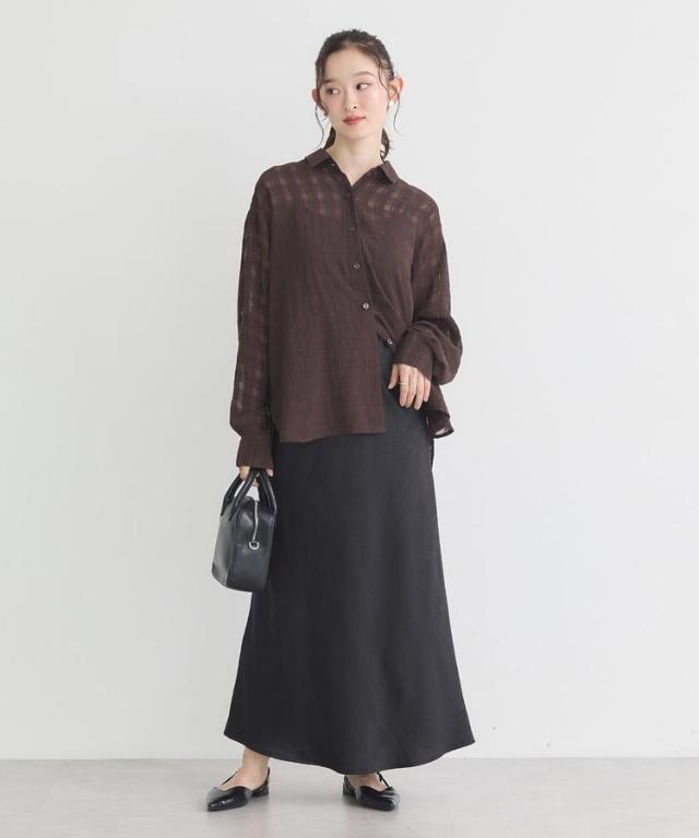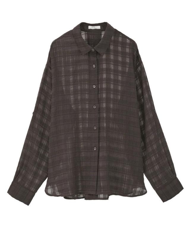 25AW レディース 長袖 シアー 透け感 秋 秋コーデ 新作 大人カジュアル チェック柄 シンプル おでかけ 通勤 オフィスカジュアル 旅行 デート 骨格 低身長 高身長 10代 20代 30代 40代 50代 トレンド おしゃれ 上品 アース 羽織