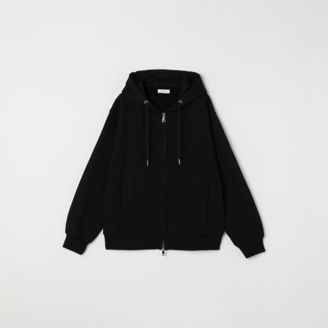 カンガルーポケットではなく切り替えポケットを採用した、ミニマルで洗練されたデザインのジップパーカー。