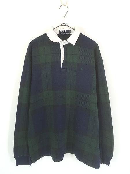 古着 90s USA製 Polo Ralph Lauren ブラックウォッチ チェック ラガー ラグビー シャツ M 古着