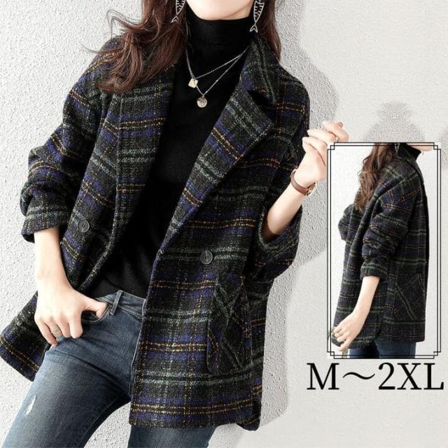 ツイード ジャケット レディース チェック 前ポケット 秋冬春 体型カバー カジュアル 40代50代60代 シニア おしゃれ 13646