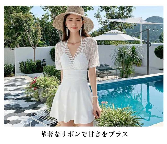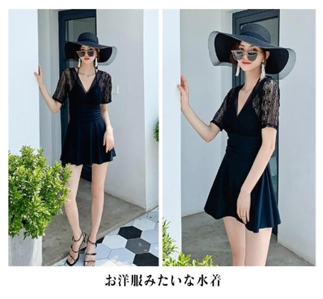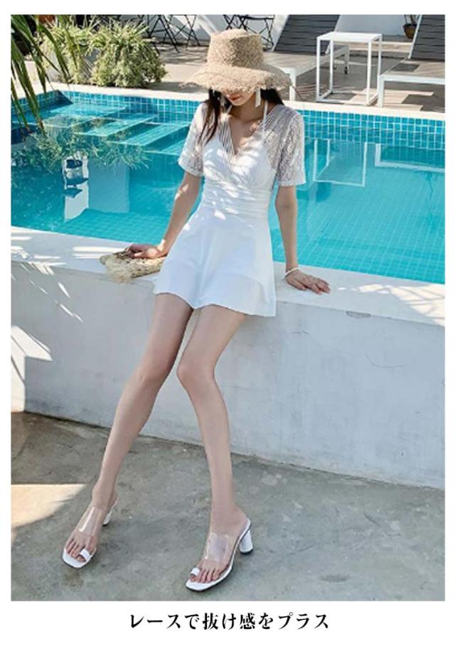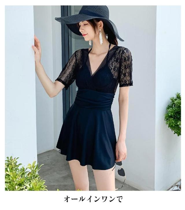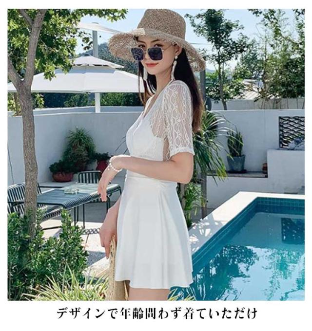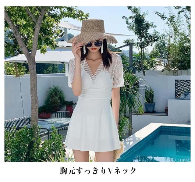 ワンピース 水着 レディース 体型カバー水着 体型カバー オールインワン ママ水着 ワイヤー入り レース カバーアップ バックシャン 大きいサイズ ショートパンツ ぽっちゃり お腹 太もも カバー ワンピース水着 上品 ブラック ホワイト 白 レース 人気 可愛い 送料無料