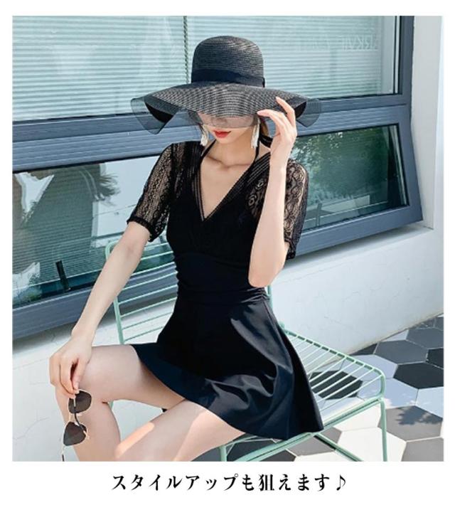 | POINT01 オールインワンで しっかり体型カバー 気になる「お腹周り」「お尻」 「二の腕」をトータルカバー! ウエストマークも高い位置で スタイルアップも狙えます♪ ■check! 露出控えめだからママにもオススメ! お洋服みたいな水着 POINT02 こなれ感のある 大人エレガントなデザイン ブラックとレースのレイヤード風 デザインで年齢問わず着ていただけ 大人っぽく上品見えするワンピース水着です。 POINT03 後ろ姿も気を抜かない! バックシャンデザイン ざっくり開いたセクシーな背中に 華奢なリボンで甘さをプラス 可愛らしさも忘れない女性らしいデザインです。 POINT04 レースで抜け感をプラス 胸元すっきりVネック カシュクール風のVネックで デコルテをキレイ見せ。 大胆すぎない肌見せで セクシーになりすぎないのが◎ ■check レース生地を組み合わせ、 ブラックでも重くなりすぎないのがgood! | |