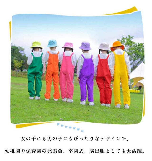 サロペット パンツ キッズ カラーパンツ ベビー 子供 ダンス衣装 女の子 カラフル サロペット オーバーオール 男の子 幼稚園 保育園 発表会 卒園式 演出服 学園祭 文化祭 学校活動 応援団 ダンスウエア 卒業式 写真撮影 記念写真 韓国子供服 無地 7色 送料無料 110-170cm