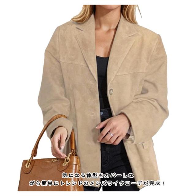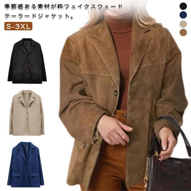 テーラードジャケット レディース スエード調 ライトアウター フェイクスエード テーラード ジャケット アウター カーディガン 羽織り ブルゾン 厚手 落ち感 起毛感 ストレッチ 無地 きれいめ カジュアル ストリート シンプル