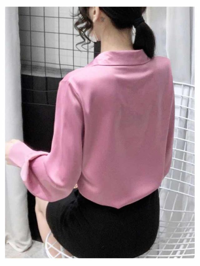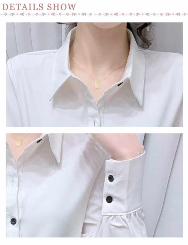 | 長すぎない着丈と主張しすぎないデザイン性で合わせるアイテムや系統問わず合わせやすいブラウスです 柔らかな素材も相まってしなやかな女性らしさを引き出してくれます スーツインナーやアウターと合わせて初秋まで使える優秀アイテムです。 シンプルなシフォンシャツはオフィスカジュアルや通勤など毎日のコーデに大活躍! | |