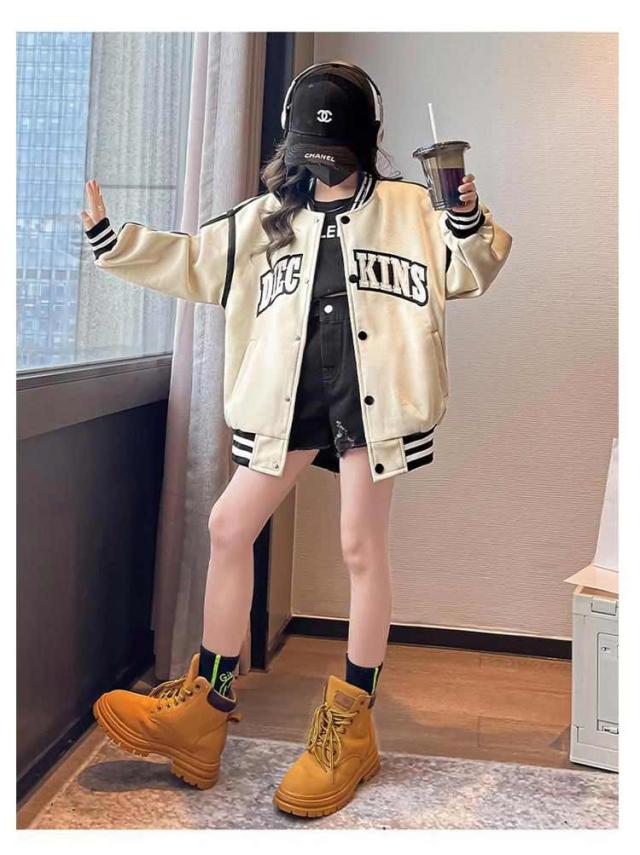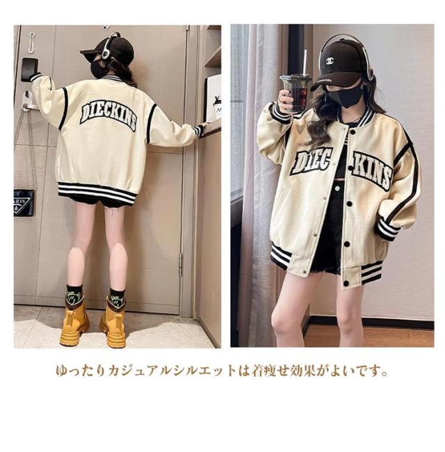 子供服 女の子 ジャケット コート スタジャン 英文字 長袖 ブルゾン アウター スプリングコート 通気性抜群 野球服 ジュニア ガールズ カジュアル シンプル 女児 秋 春 上着 スウェット 秋物 秋ジャケット 防寒 通園 通学