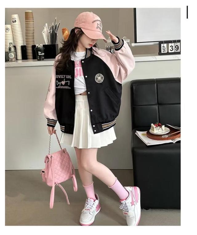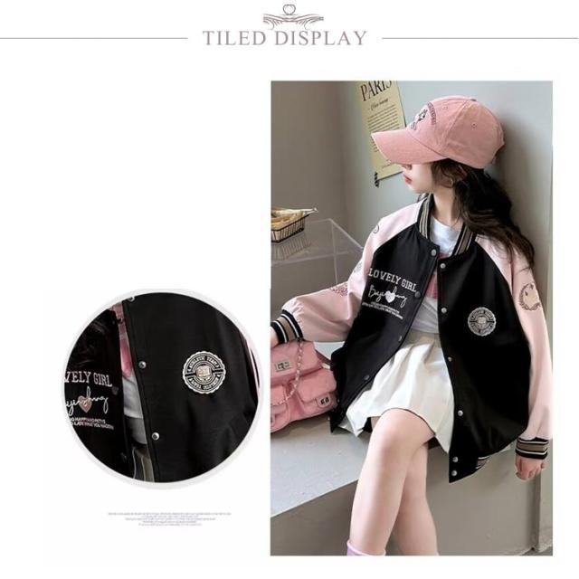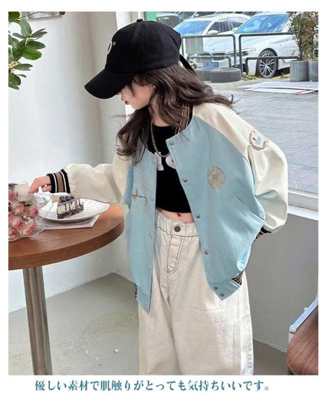スタジャン 長袖 子供服 女の子 ジャケット コート 春秋 キッズ 可愛い 英語 ブルゾン スプリングコート シンプル 可愛い 通気性抜群 野球服 上着 スウェット 肌触り 通園 通学 女児