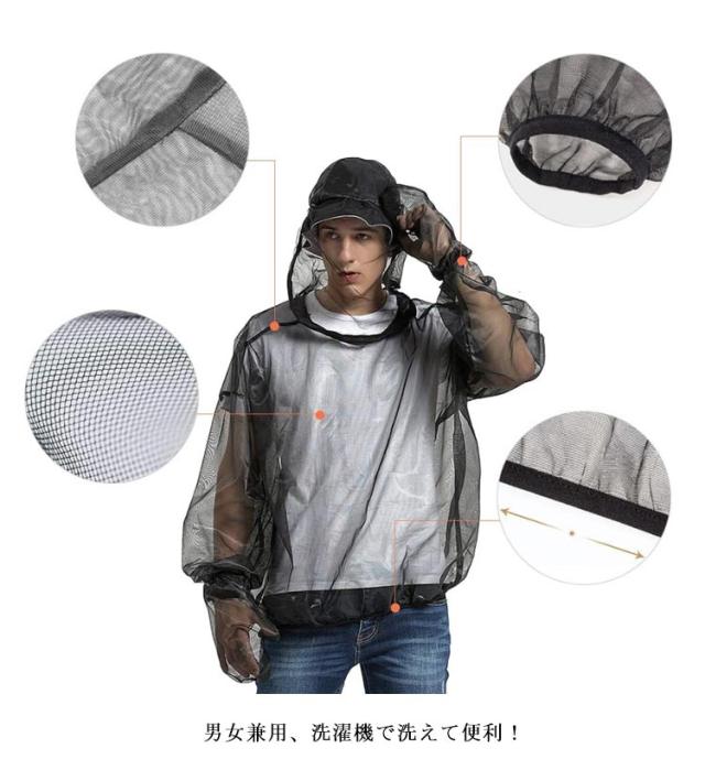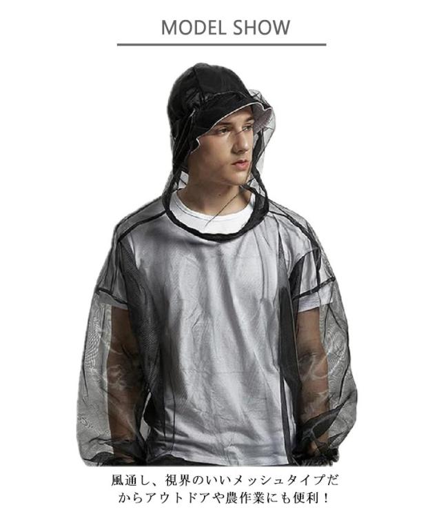 | S-2XL!虫の侵入をブロック!顔まですっぽり虫よけパーカー 風通し、視界のいいメッシュタイプだからアウトドアや農作業にも便利! 帽子やサンバイザーをつけたままかぶれるフード。 袖と裾はゴム入りで、虫の侵入を防ぎます。また、ロング丈なのでお尻まですっぽりカバーします。 男女兼用、洗濯機で洗えて便利! | |