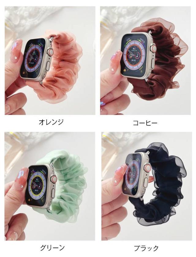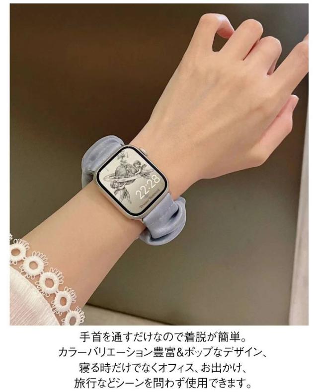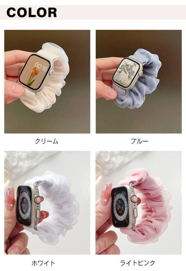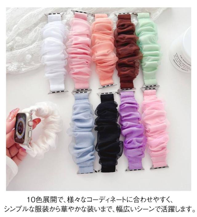 10色 Apple シュシュ 時計 Watch バンド アップルウォッチ バンド フリル スマート シアー レディース 睡眠 アップルウォッチ 腕時計 Android かわいい シュシュ 韓国風 防水 おしゃれ キラキラ 大人可愛い 38mm 40mm 41mm 42mm