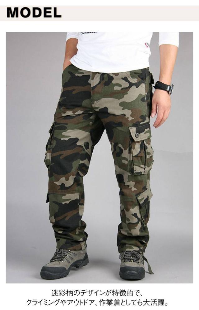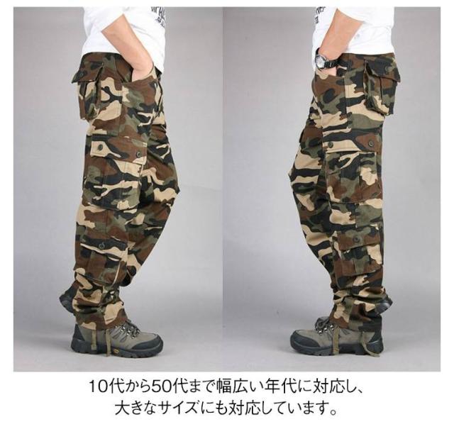 | 春秋にぴったりなカーゴパンツが登場! 迷彩柄のデザインが特徴的で、クライミングやアウトドア、作業着としても大活躍。 8つのポケットで収納力も抜群。 ストリートやアメカジスタイルにも合わせやすい、ビッグシルエットのゆったりとしたシルエットで、動きやすさと快適さも兼ね備えています。 10代から50代まで幅広い年代に対応し、大きなサイズにも対応しています。 キャンプや日常のカジュアルコーディネートにも最適。 | |