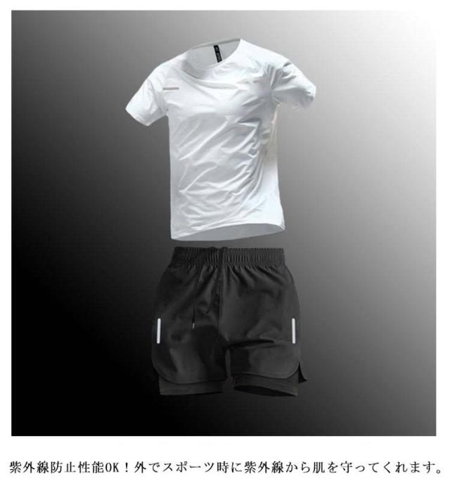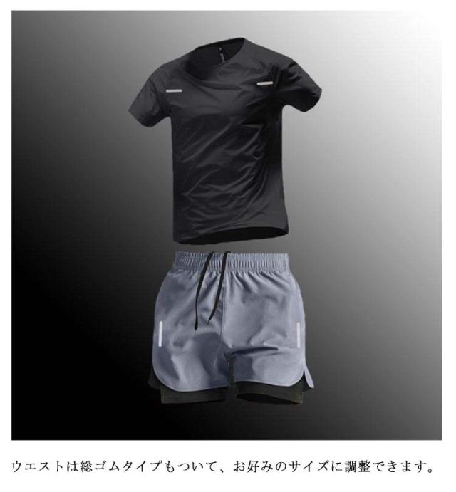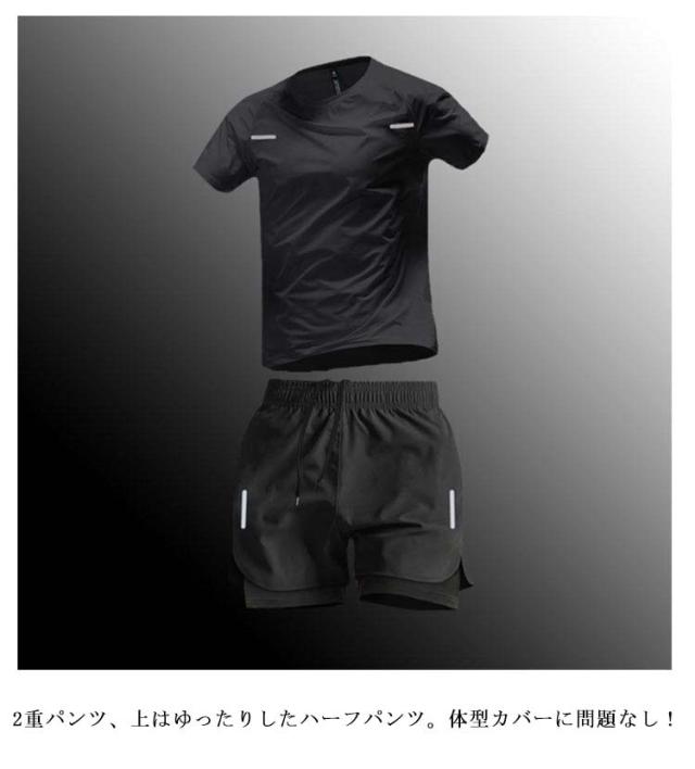 | 速乾生地は汗を素早く吸水蒸発し、汗のベタつきや汗冷えを抑えてくれます。 紫外線防止性能OK!外でスポーツ時に紫外線から肌を守ってくれます。 2重パンツ、上はゆったりしたハーフパンツ。体型カバーに問題なし! ウエストは総ゴムタイプもついて、お好みのサイズに調整できます。 | |