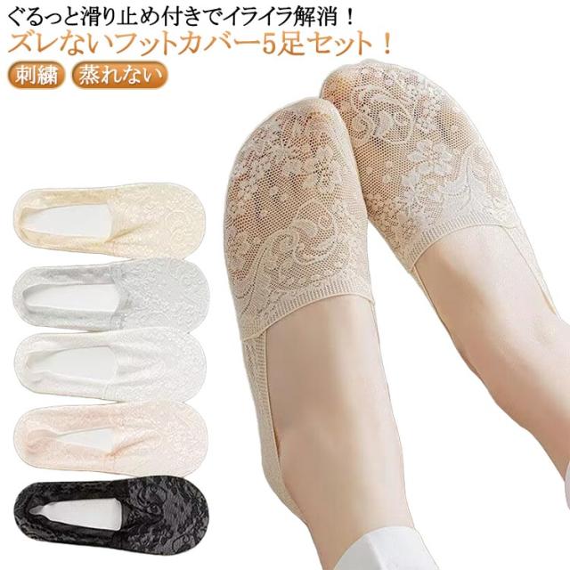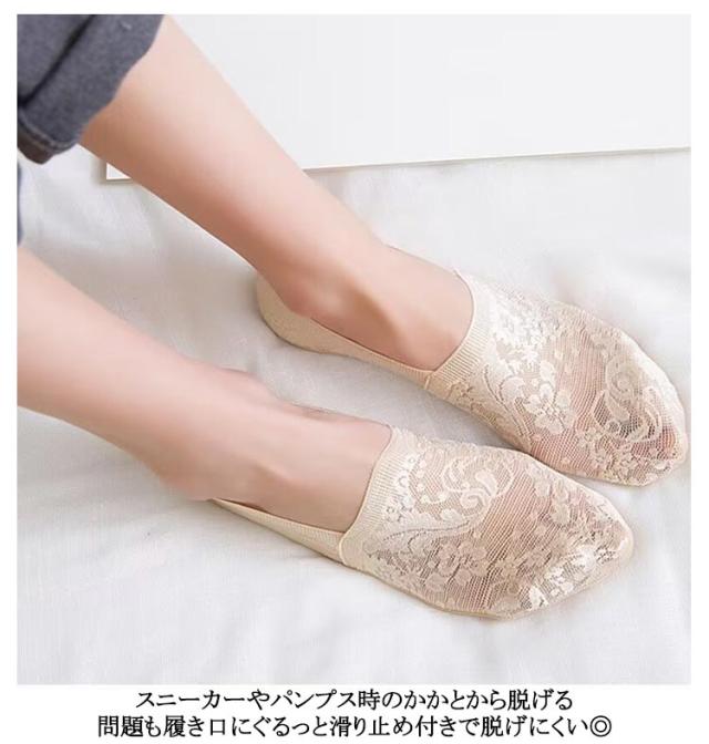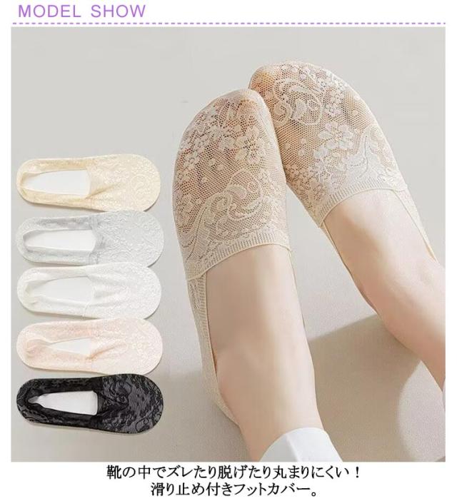 シースルー レディース 脱げない フットカバー 靴下 刺繍 パンプス 5足セット シアー 薄手 レース くるぶし 履き口 滑り止め 靴下 おしゃれ ショート かかと 履きやすい 浅履き メッシュ 涼しい さらさら 蒸れない 脱げにくい 春 夏