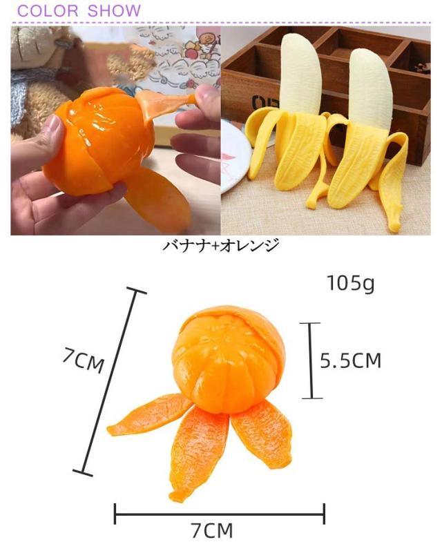 | 2個セット/バナナ+オレンジ!オフィスや自宅で大活躍する、新しい癒しのグッズ。 ぎゅーっと伸ばすとストレス発散にも最適です。 癒し系のおもしろいデザインとぷにぷにの感覚が癖になる事間違いなし! にぎにぎしておもしろいフォルムに癒されるのはもちろん、 手触りと弾力性抜群で、自宅でも、学校やオフィスでもおすすめのぷにぷに癒しおもちゃです。 高品質で環境に優しいTPR素材で作られて、高弾性、耐老化性、耐油性、優れた性能を備えた、 人やペットに無害で耐久性があり、洗浄後も無期限に再利用できます。 | |