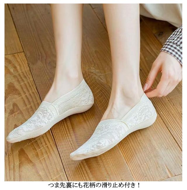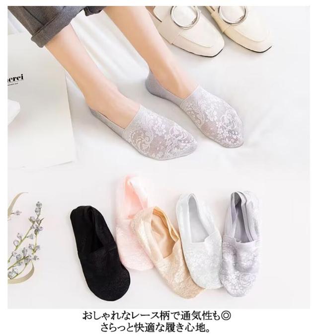 滑り止め レディース レース 脱げない シアー 5足セット 浅履き 刺繍 フットカバー ソックス 靴下 おしゃれ 履きやすい シースルー メッシュ 涼しい ショート かかと 薄手 靴下 蒸れない 履き口 さらさら パンプス 脱げにくい 春 夏